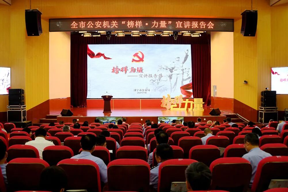 为深入推进“坚持政治建警全面从严治警”教育整顿试点工作,大力弘扬先进人物和事迹,激励全市公安机关广大民警向先进看齐、向榜样学习,9月15日下午,济宁市公安局隆重举办“榜样·力量”宣讲报告会。公安部第三驻点指导组组长、公安部四局政委李晓东,副组长、公安部三局一级巡视员田卫军,济宁市副市长、市公安局局长李海洋出席活动,市公安局政委马世耀致辞。公安部第三驻点指导组、省公安厅协助驻点指导组成员,市公安局全体党委成员,市公安局局属各单位主要负责同志以及党员民警代表约300余人参加活动。