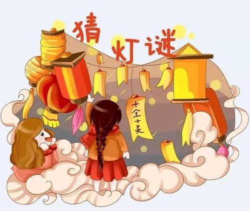 猜灯谜又叫打灯谜,是元宵节的一项传统活动,灯谜最早是由谜语发展而来的,起源于春秋战国时期。谜语悬之于灯,供人猜射,开始于南宋。南宋周密《武林旧事•灯品》记载:“以绢灯剪写诗词,时寓讥笑,及画人物,藏头隐语,及旧京诨语,戏弄行人。”元宵佳节,帝城不夜,春宵赏灯之会,百姓杂陈,诗谜书于灯,映于烛,列于通衢,任人猜度,所以称为“灯谜”。